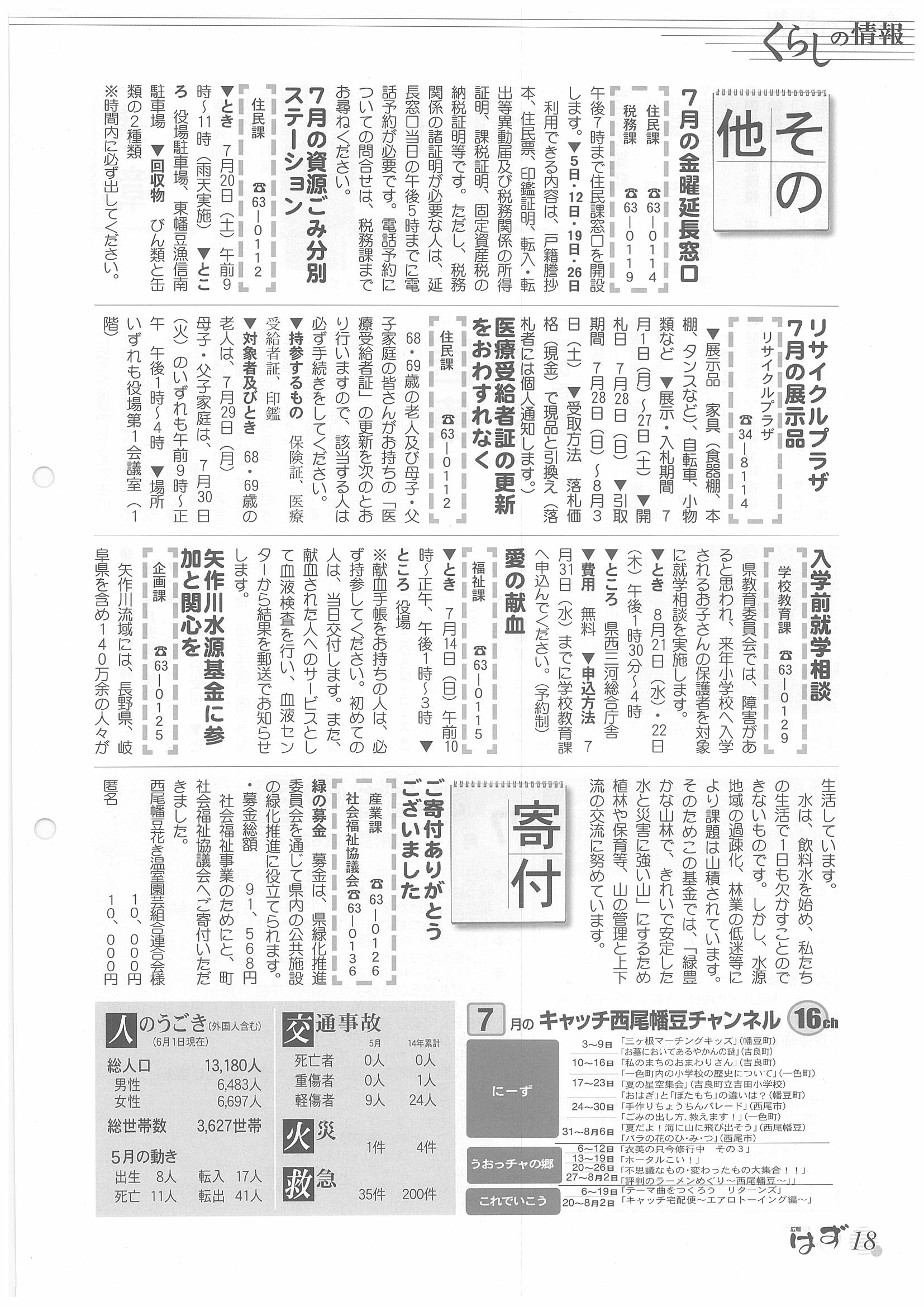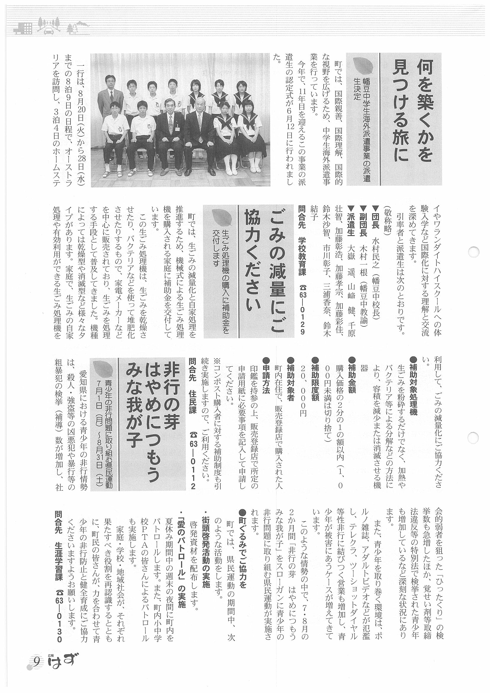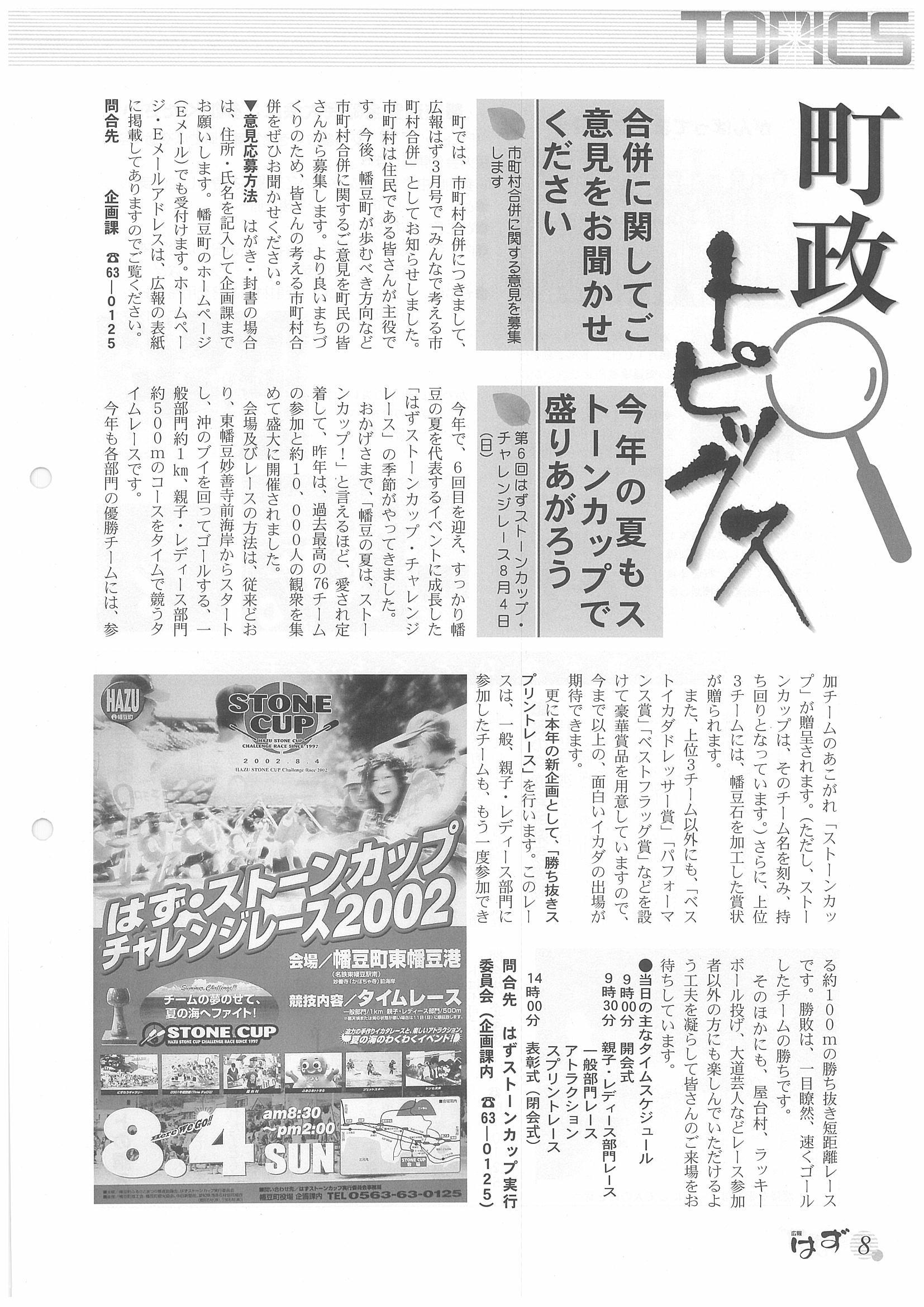 「広報はず」 2002年(平成14年) 7月号 目次