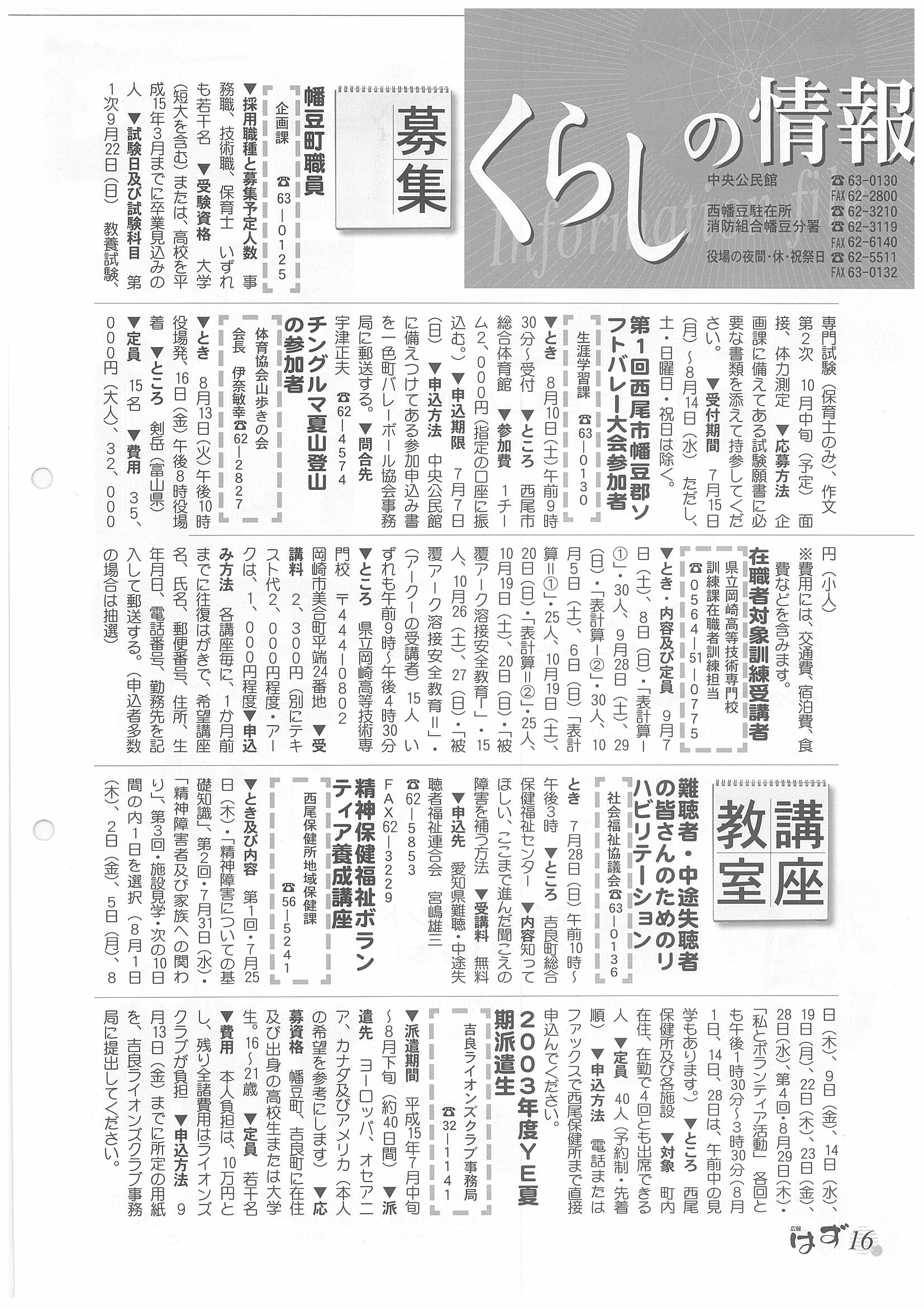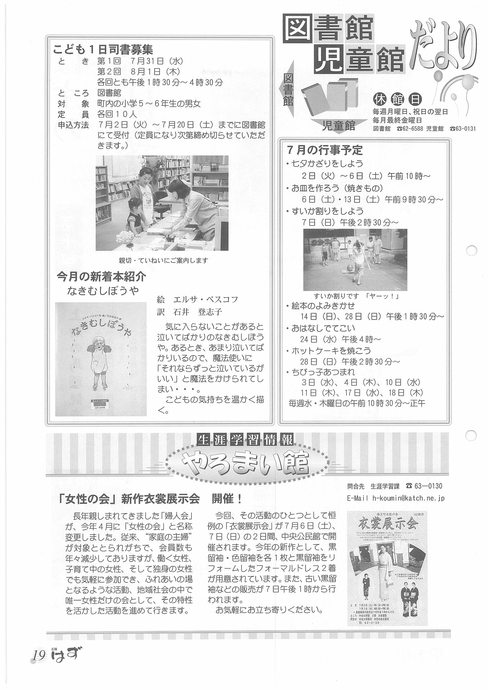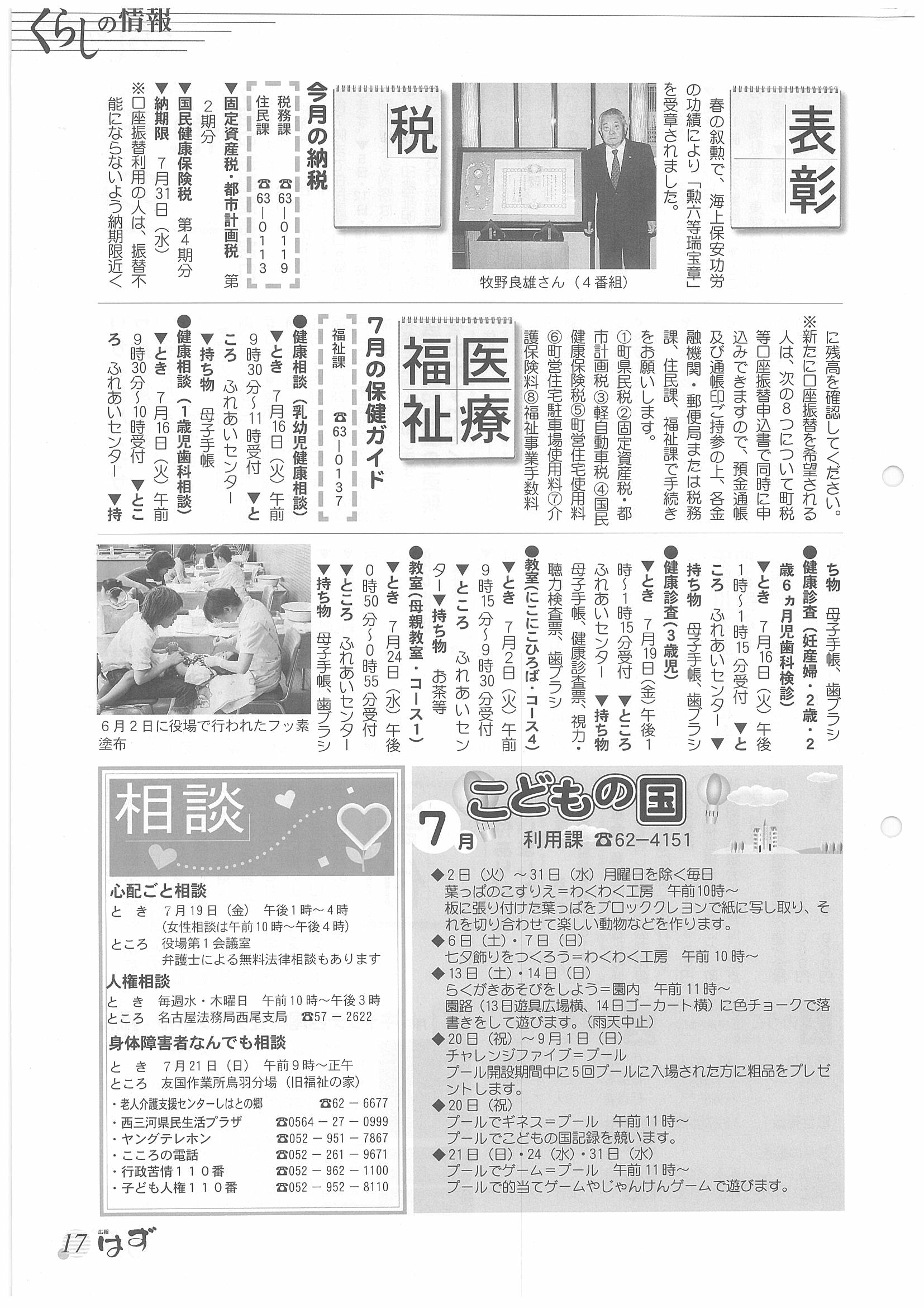 「広報はず」 2002年(平成14年) 7月号 目次