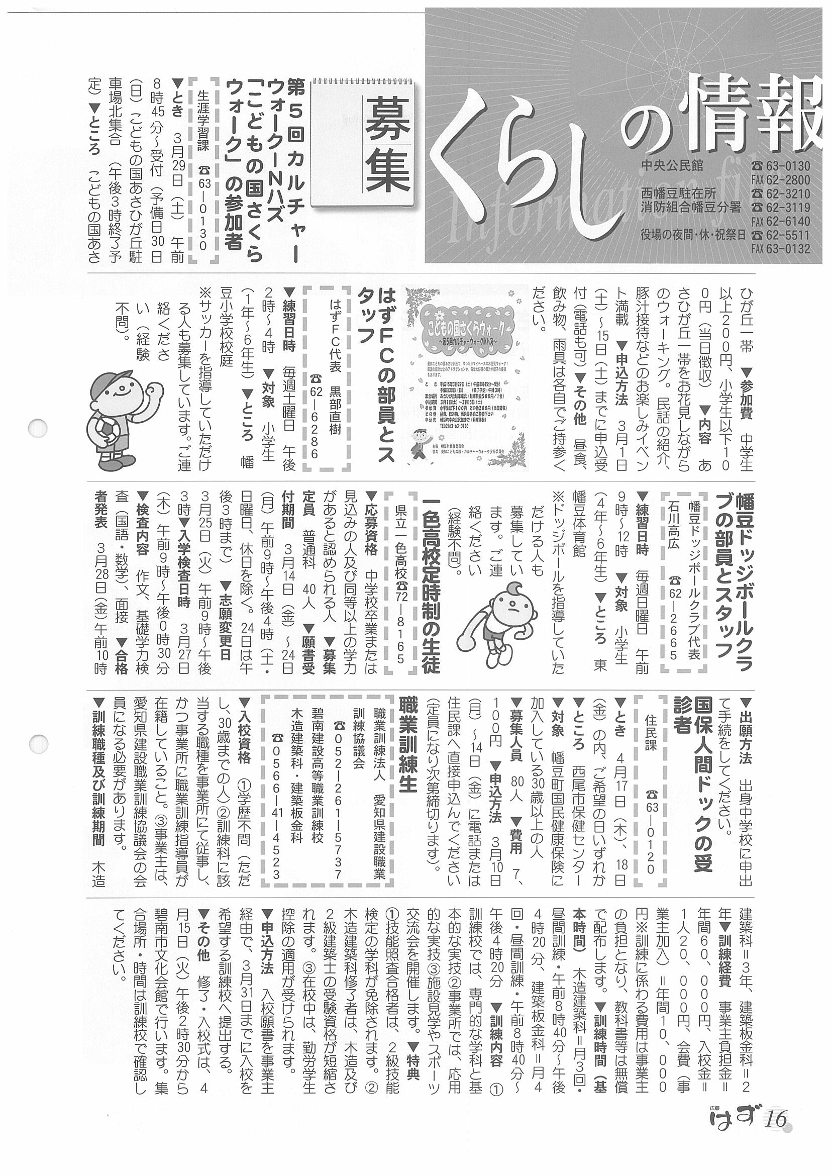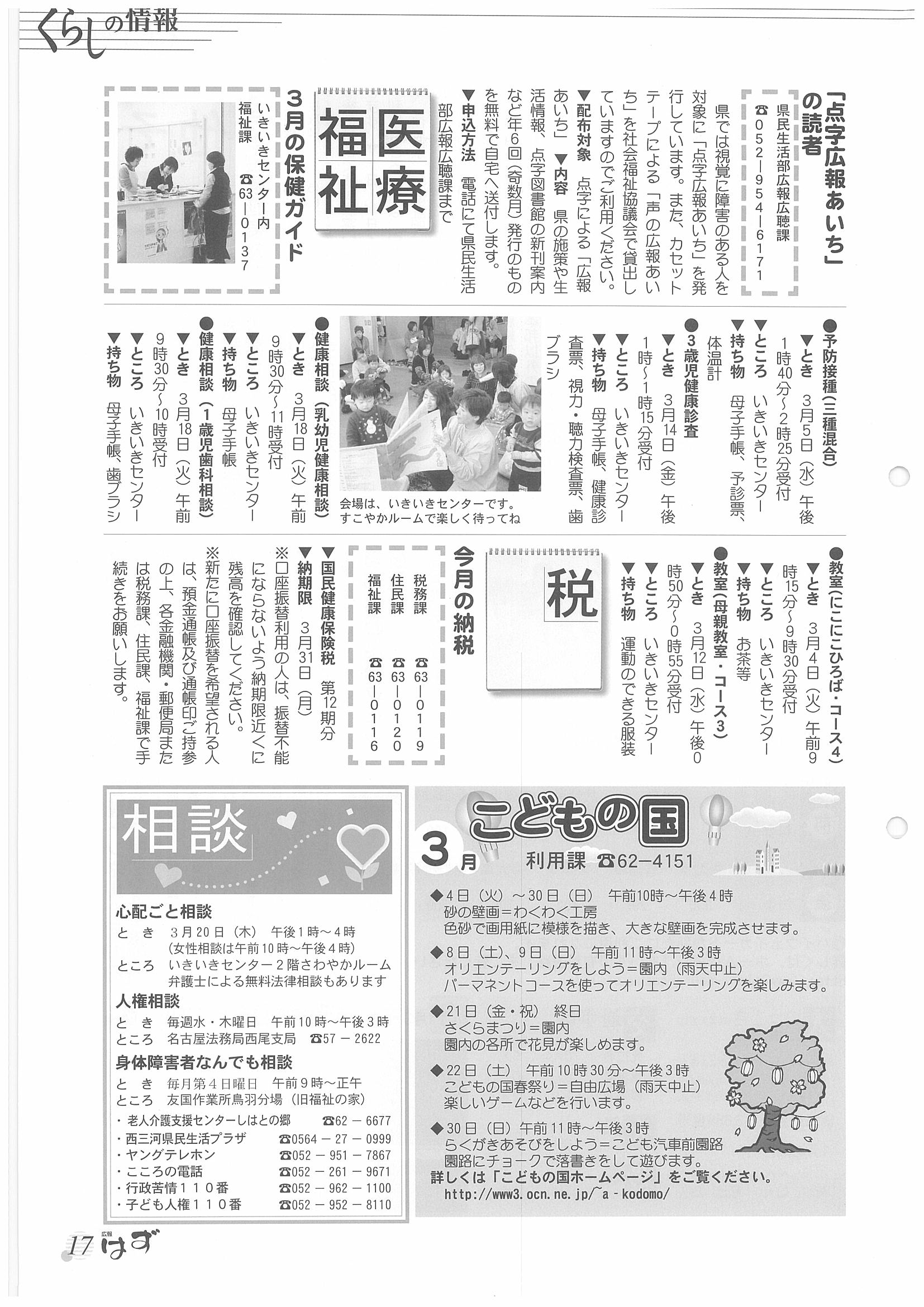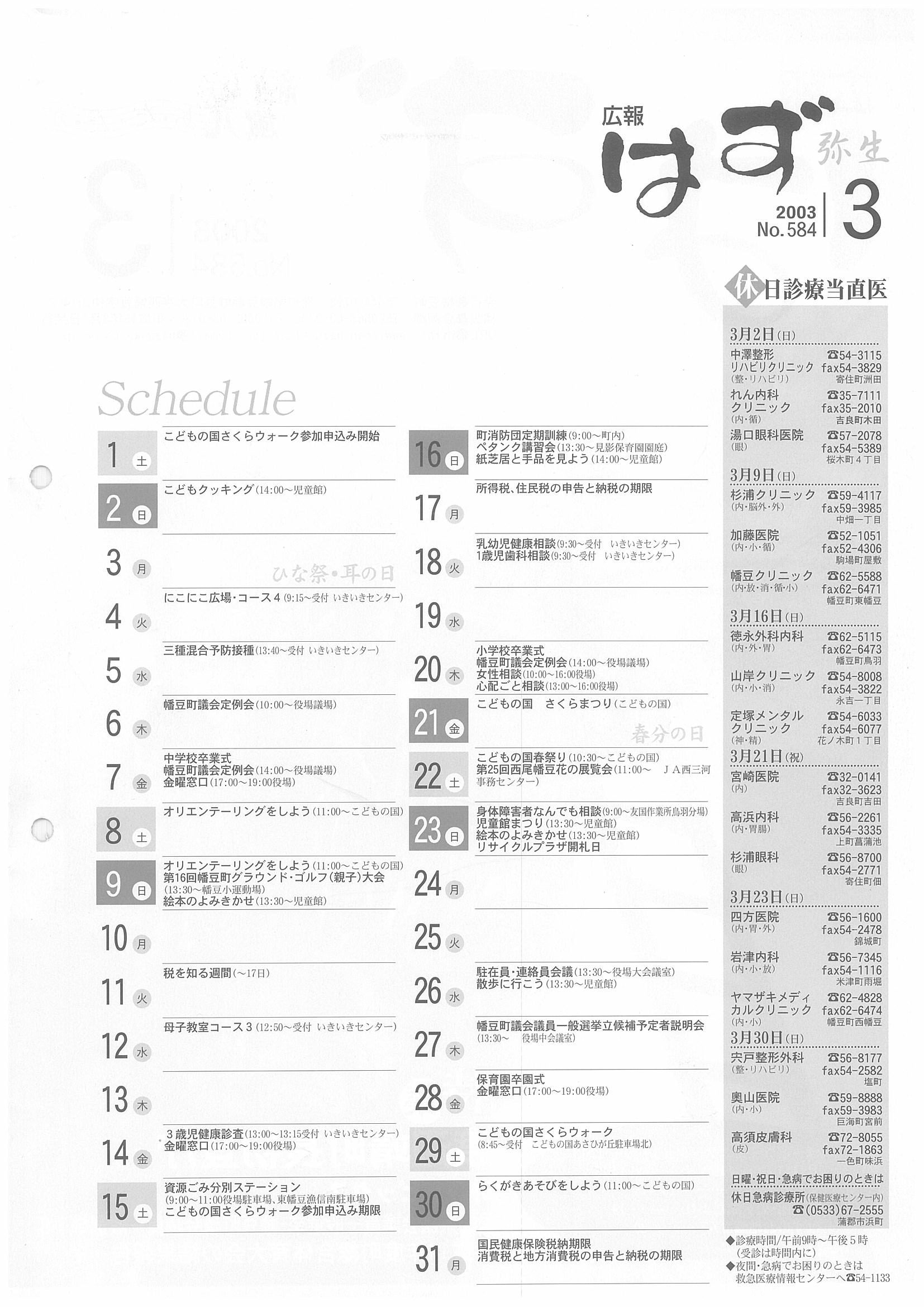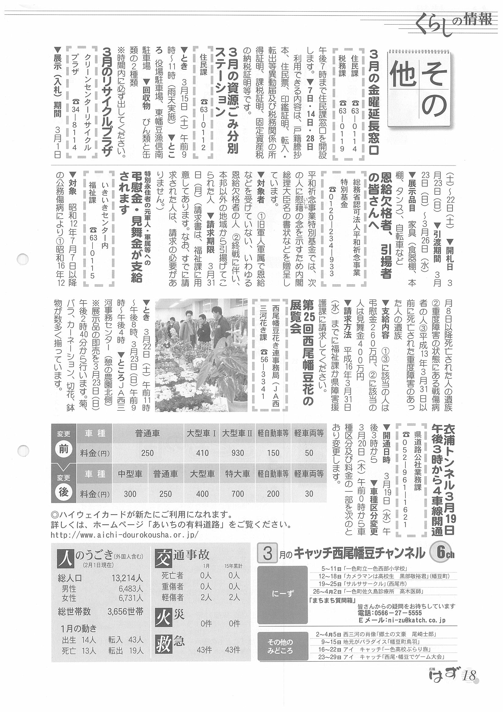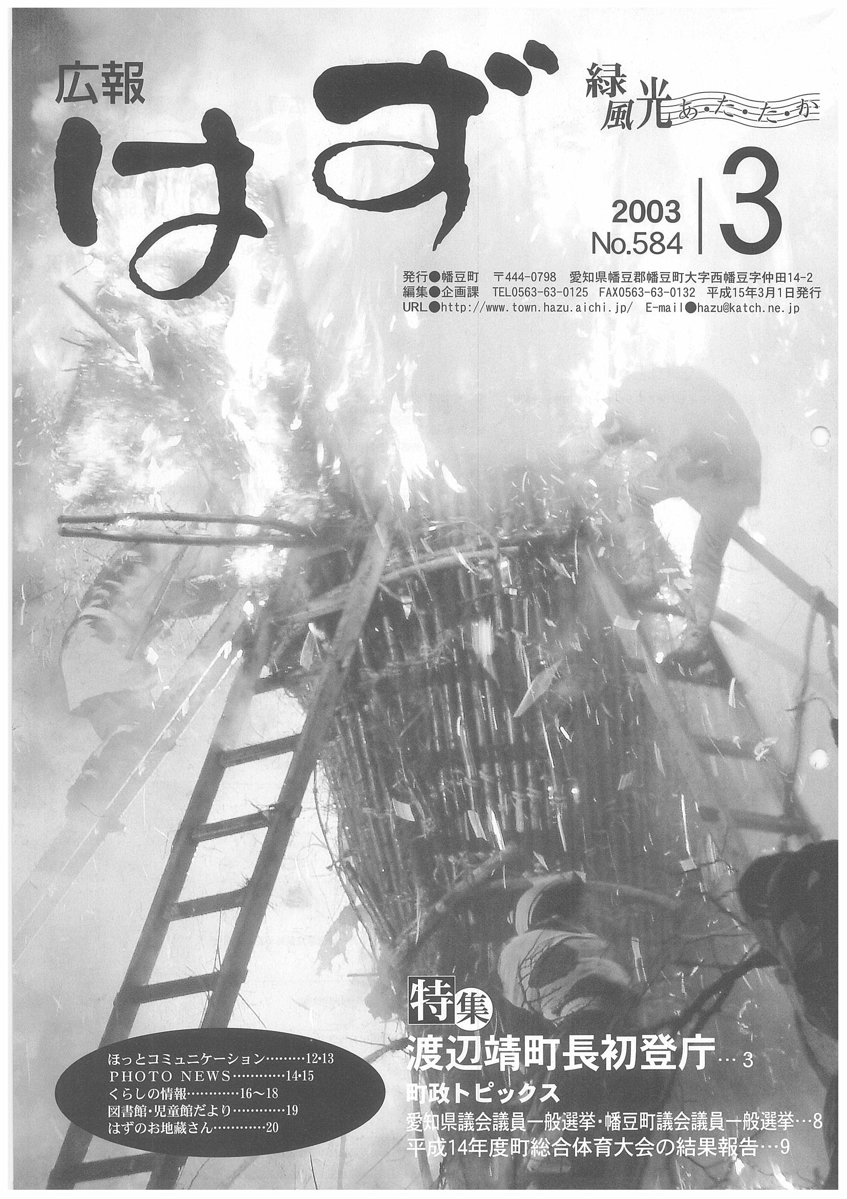 「広報はず」 2003年(平成13年) 3月号 目次