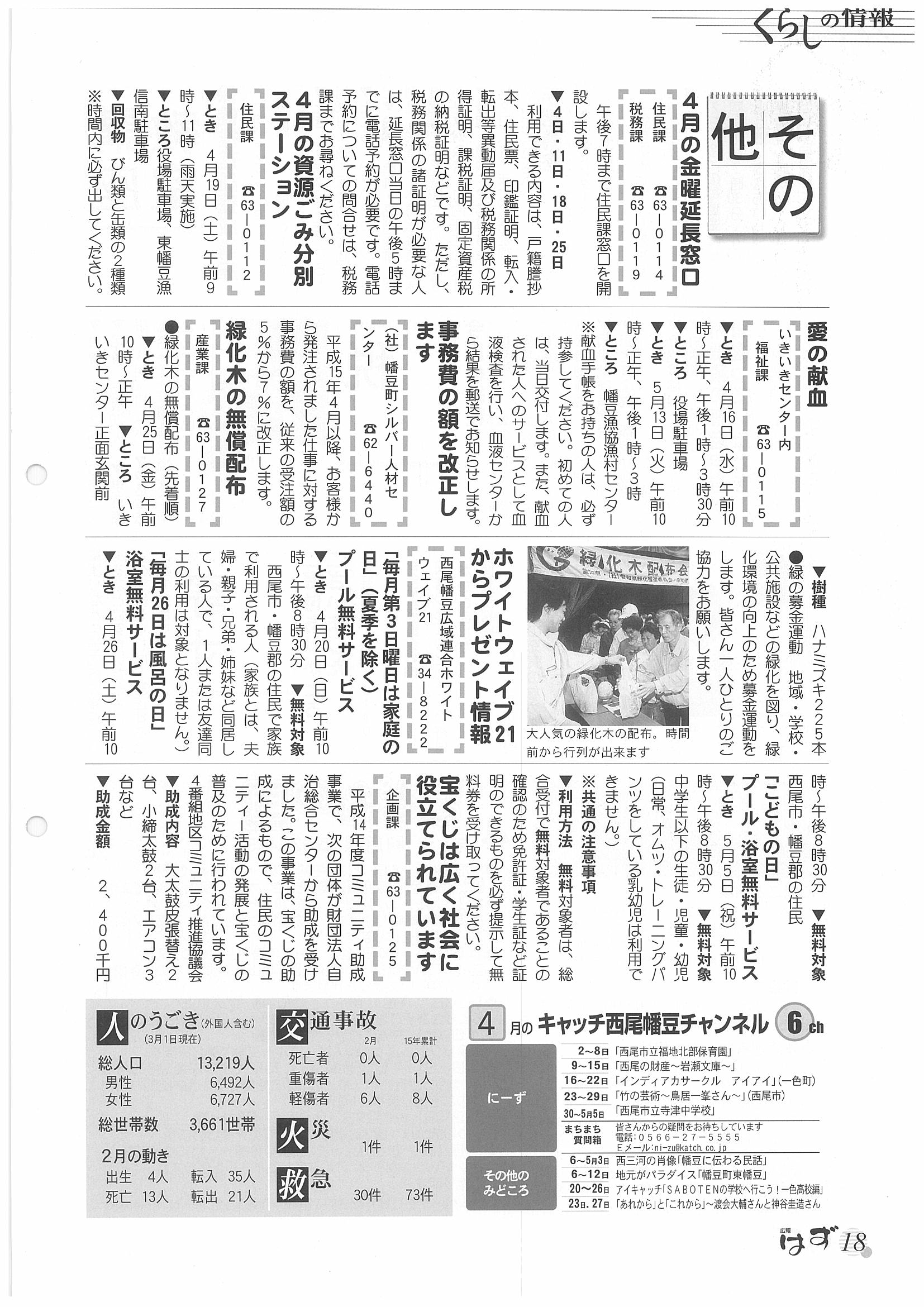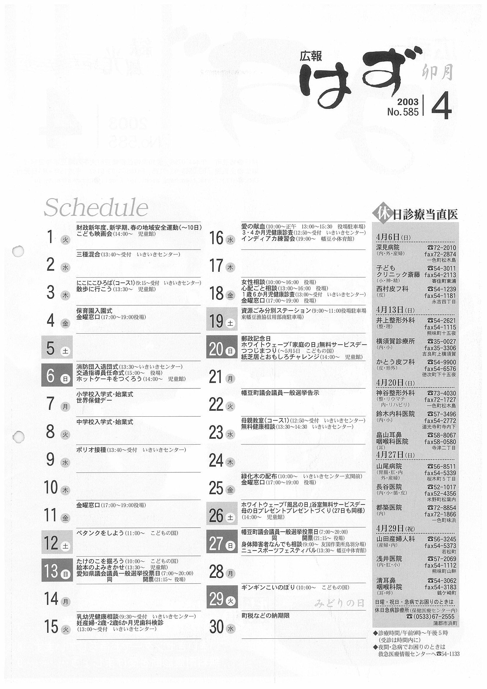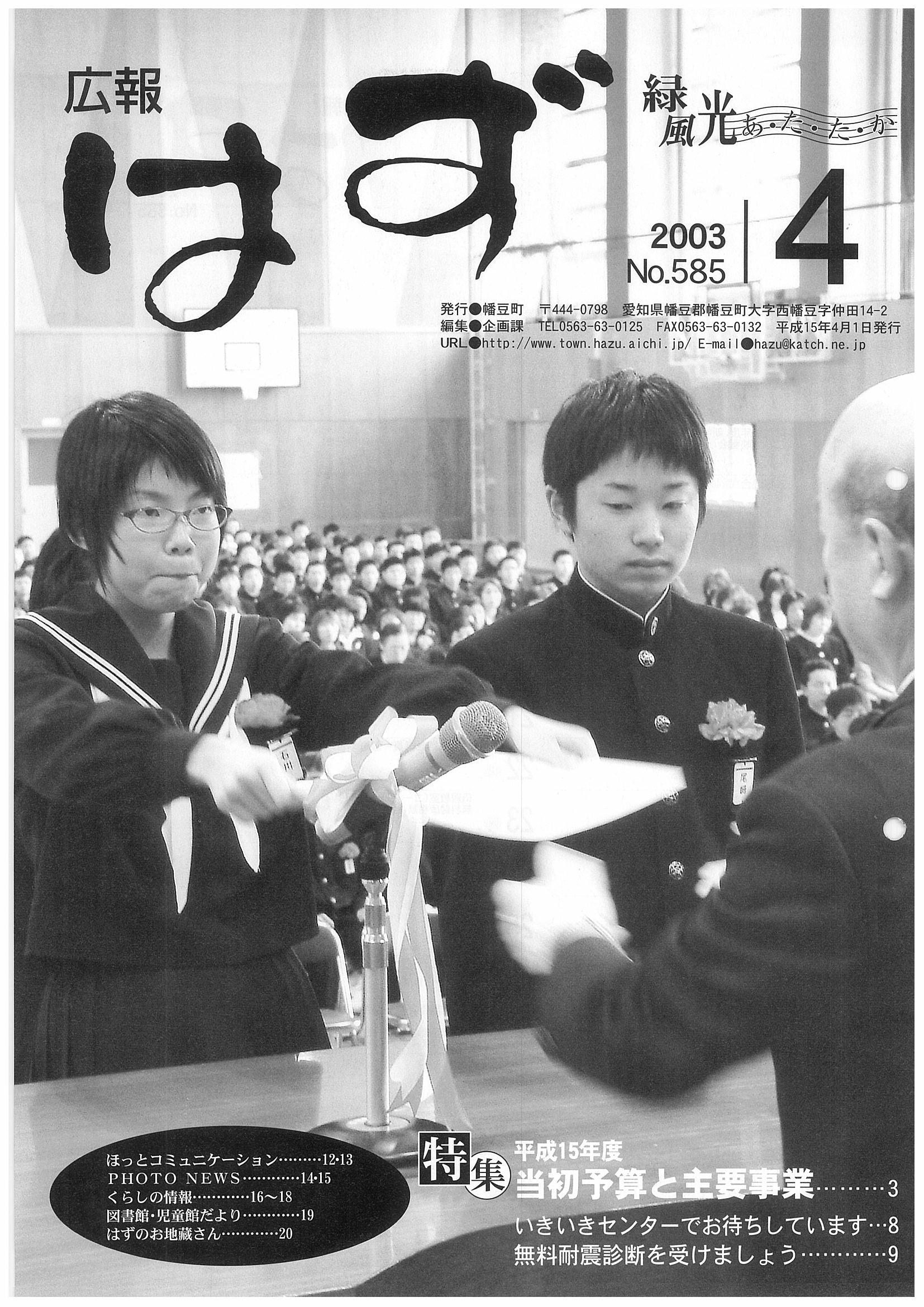 「広報はず」 2003年(平成13年) 4月号 目次