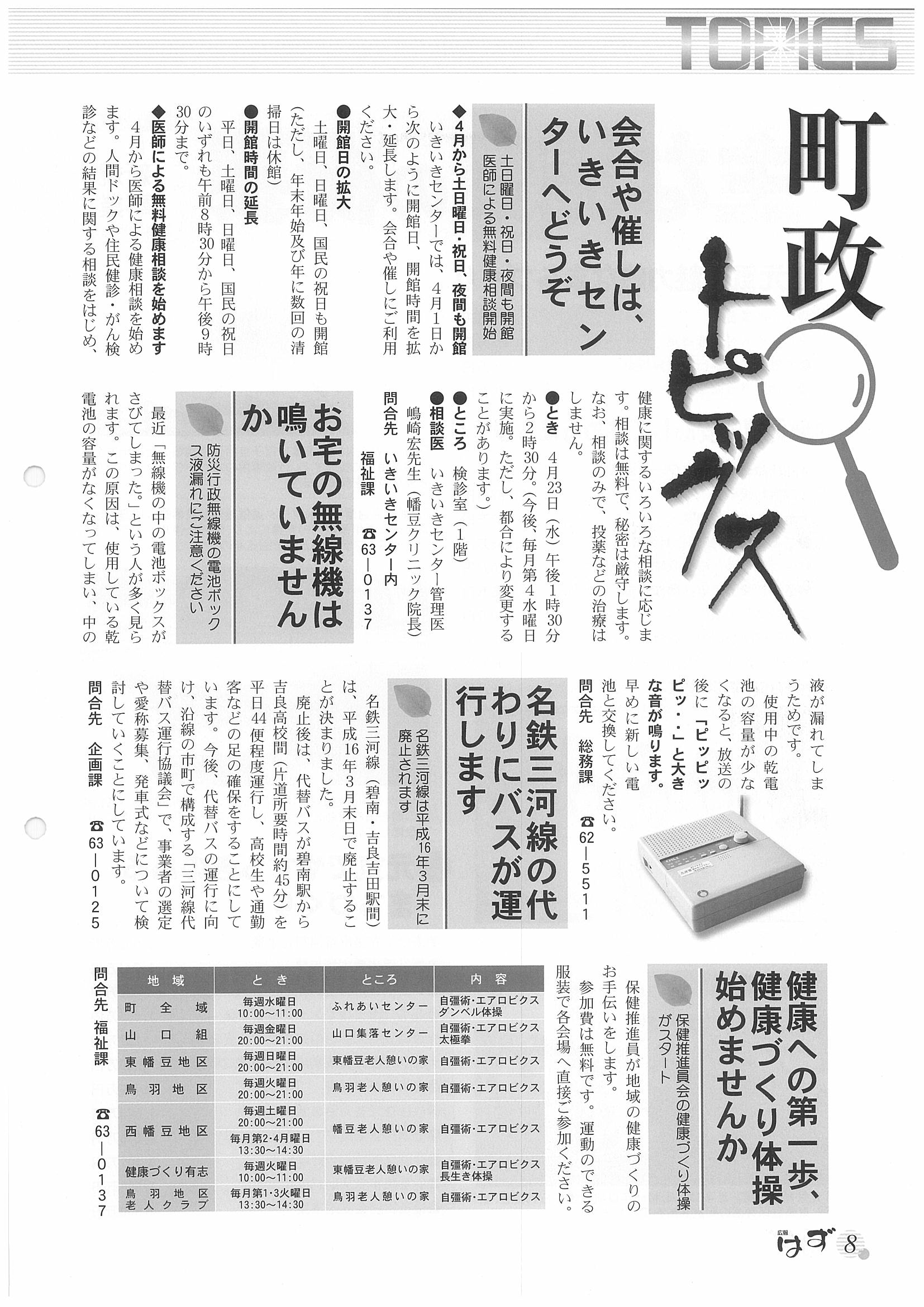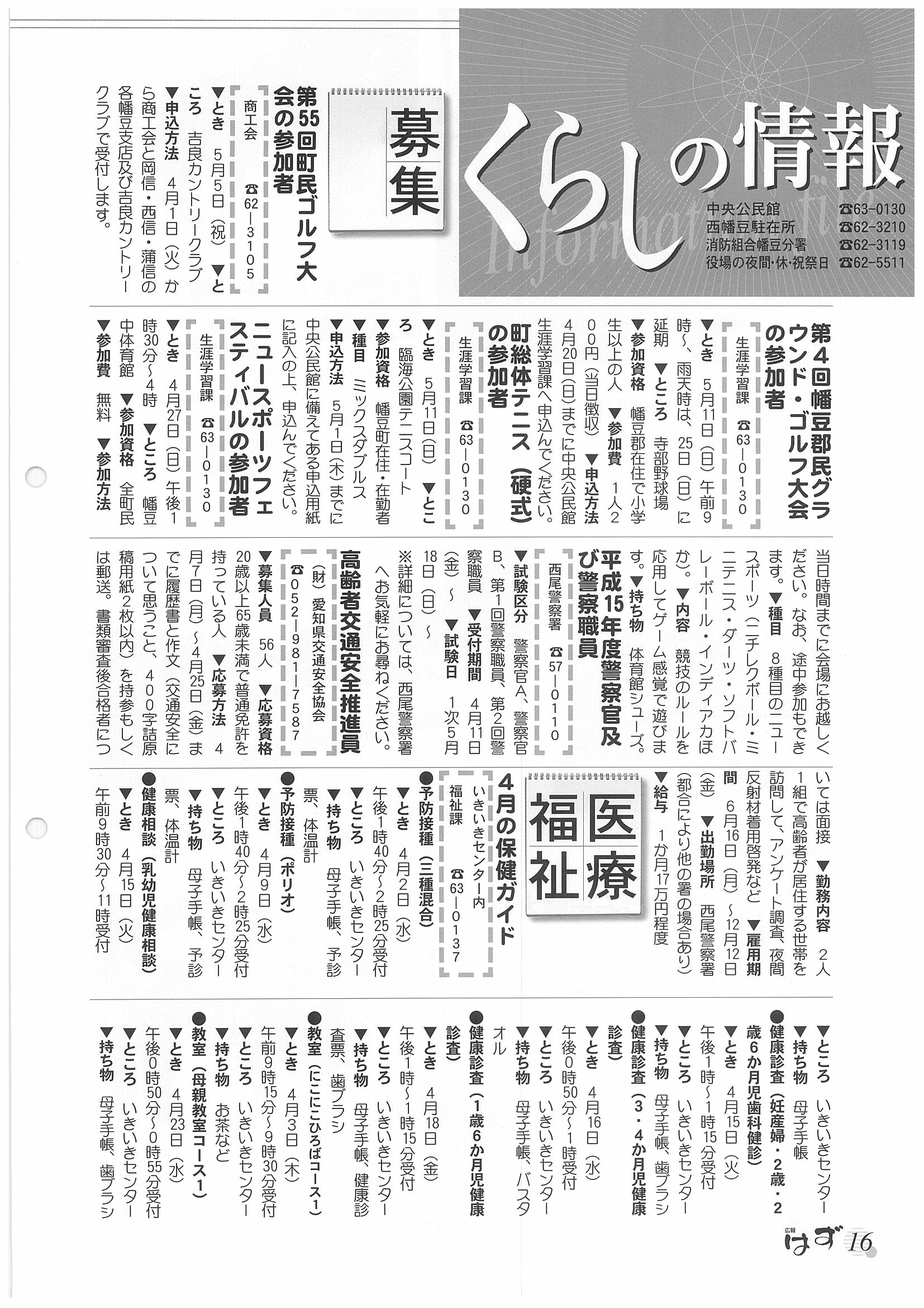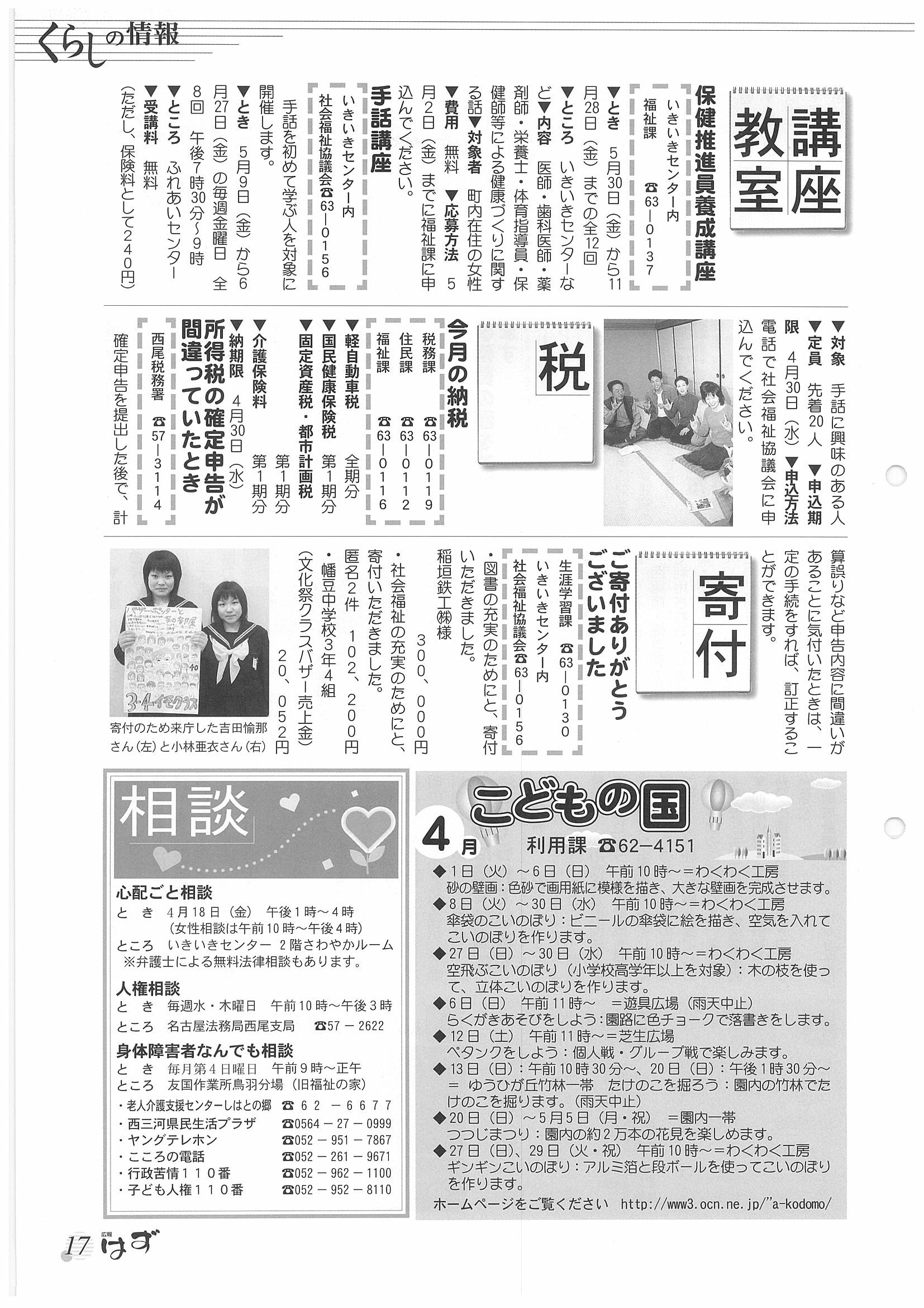 「広報はず」 2003年(平成13年) 4月号 目次