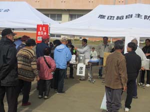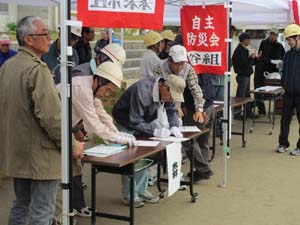 受付開始です。各自主防災会ごとに受付を