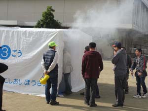 もくもくハウスを使って、煙の中を通る訓練