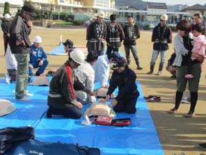 AEDの取り扱い訓練です。人工呼吸より