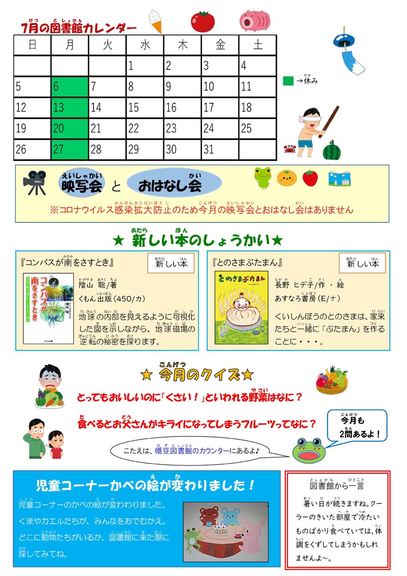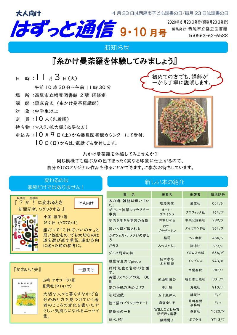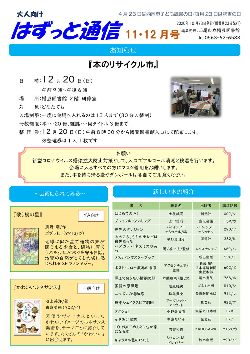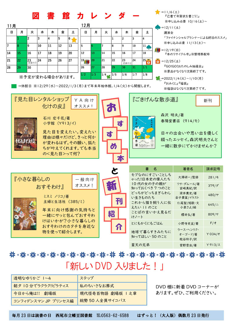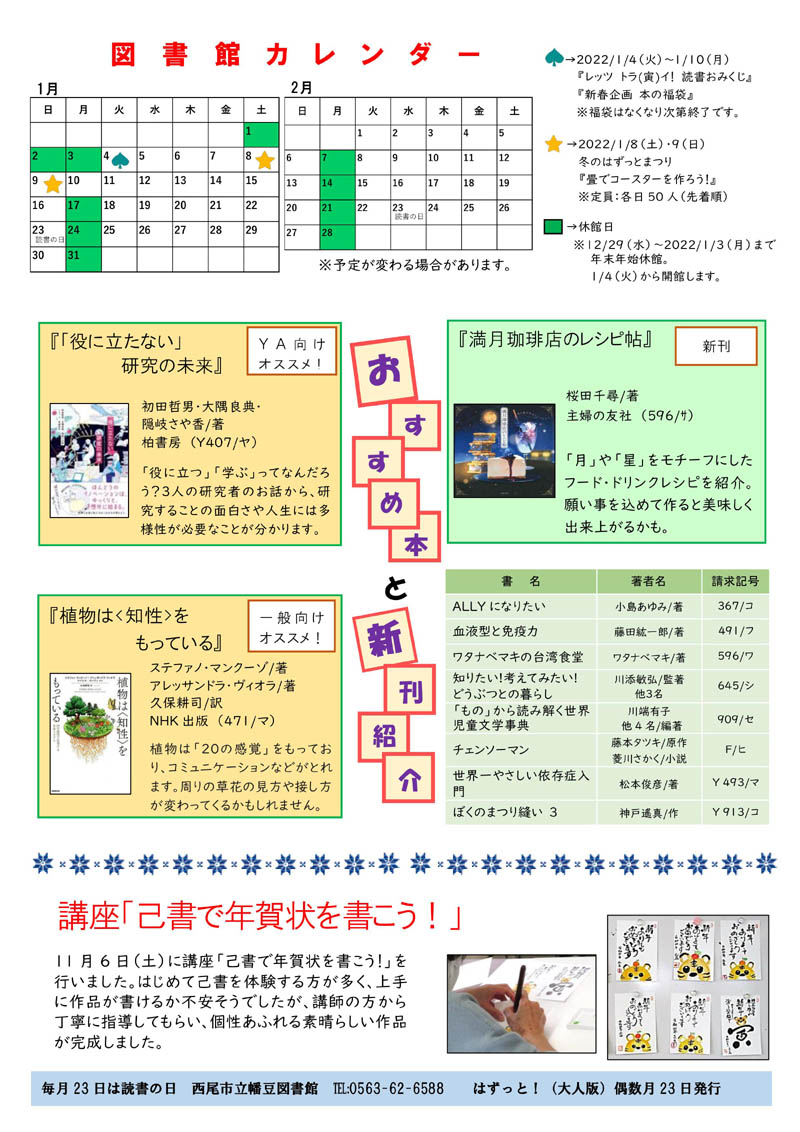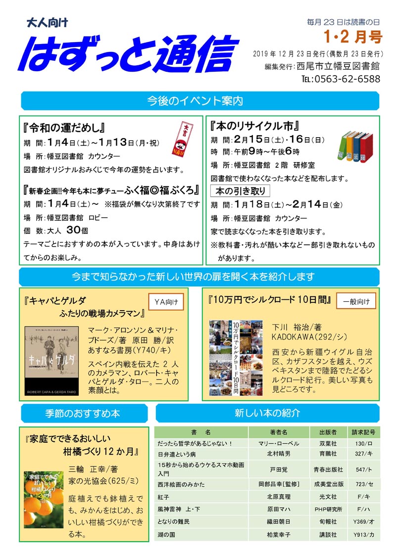 | 平成28年4月からスタートした「はずっと新聞」(幡豆図書館こども機関誌)をホームページに掲載します。行事などを紹介します。 なお、活動している様子の写真を顔が特定できないものにしたり、イラストに差し替えたりしてありますので、ご了承ください。 |