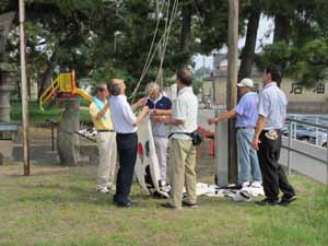 ![]() 役員は当日昼間に集まって幟立てから 準備開始です |