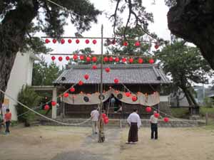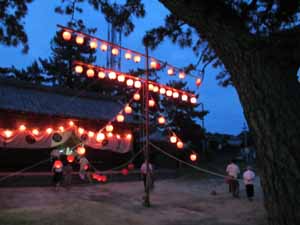 ![]() 暗くなってきて参拝者が増えてきます みんなで提灯を付けます |
