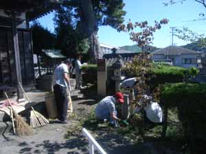 塚越観音清掃です。落葉が一杯、木の剪定もあって大変でした |