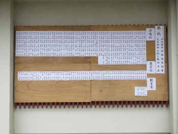 ![]() 沢山の方から沖嶋社、愛宕社に御神前やお供え物が奉納され、公民館の表には、奉納者ご芳名が掲示されました |