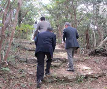 ![]() 小見行組役員は標高267mの愛宕山山頂の愛宕社祭礼のために登ります |