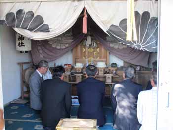 ![]() 宮係委員長が祝詞を上げ、氏子の家内安全を祈願します |