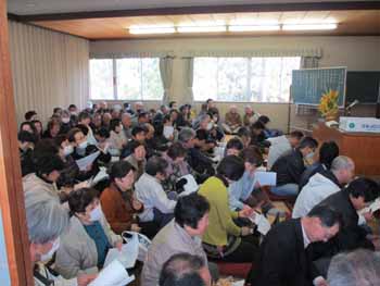 ![]() 出席者数報告、議事録署名人選出をして議事に入ります。1号議案は24年度事業報告で組長が報告します。 |