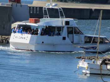 ![]() 子供御輿の参加者は11時の船で沖島へ渡ります。大勢が乗船して定員がオーバーしてしまい臨時便まで待った人もいました |