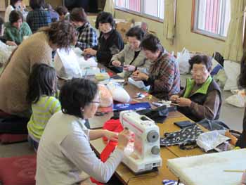 ![]() 観音堂にある「さるぼぼ」を6年に1回、新調します。これは、手作業で裁縫に自信のある組内の女性が担当しました。後継者育成も大変です |
