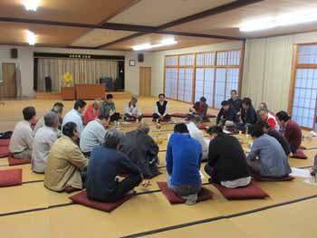 ![]() 唄の練習の仕上げは、起立して餅を担ぐイメージで唄いました |