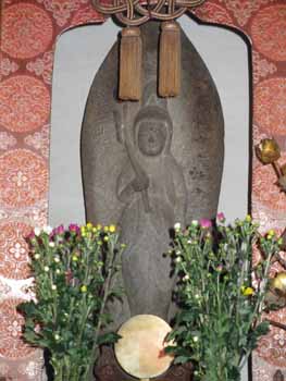 常には幕で内側は見られないですが、この御開帳期間は観音菩薩本尊の石像が拝観できます。