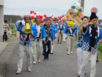 中の浜地区を練り歩きます。伊勢音頭が響きます
