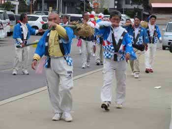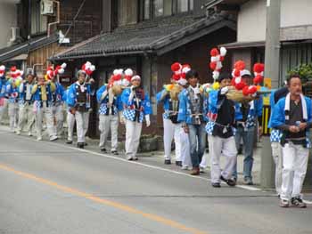 本郷地区を練り歩きます。車の通りが多く大変です |