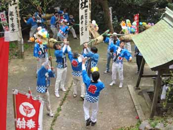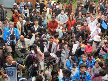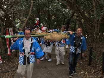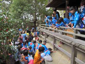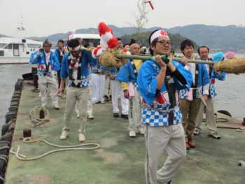 沢山の氏子や親戚縁者が島まで集まってきまして、餅を拾います |