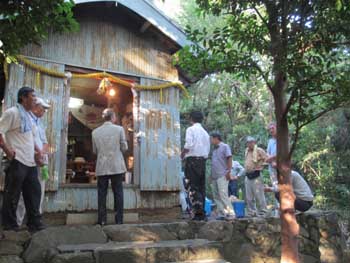 ![]() 役員は15時に集まり、照明の設置、お供え物や御神酒も用意し、また蚊取り線香も用意します。デング熱も心配です |