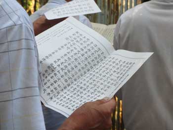 ![]() 祝詞のあとは役員みんなで般若心経を読みます (今回のページは宗教行事がメイン) |