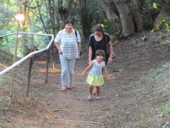 ![]() 孫と一緒に参道を上がります。昨日の雨だったので、滑って転ばないように |