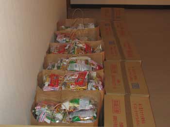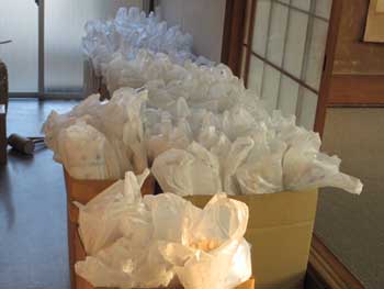 ![]() 振る舞いのタオル、菓子です。袋詰めも終わりました |