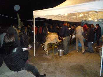 ![]() 振る舞いの酒、おでん、ぜんざい。ぜんざいがいつも早く終わってしまいます |