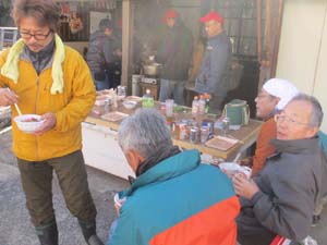 沢山の人の参拝がありました。振る舞いは「お酒」、「おでん」、「ぜんざい」と厄払いの「記念品」です。