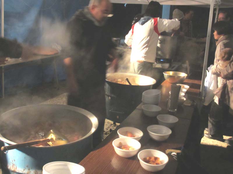 振る舞いの「おでん」「ぜんざい」と樽酒