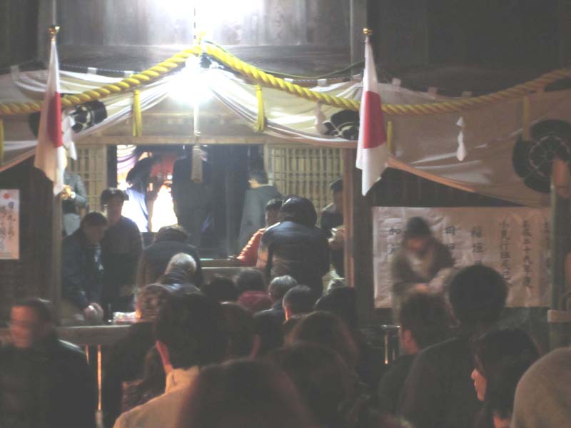 また、大晦の夜について、筆者は役員でないので紅白歌合戦を観てから津島社に出かけまして、写真は拝殿外から