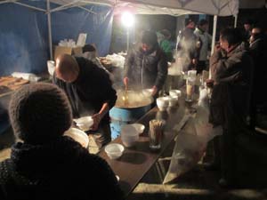 さほど寒くもなく、沢山の人の参拝がありました。振る舞いは「お酒」、「おでん」、「ぜんざい」と厄払いの