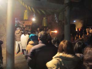 元旦を迎える0時近くになると、ここ小見行組の氏神さんである津嶋社への参拝者が増えます。天気が良く、