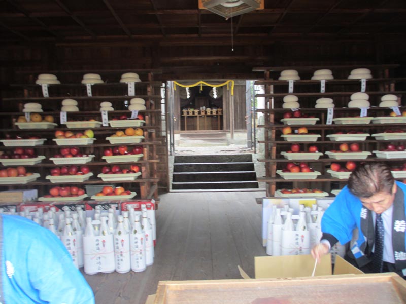 拝殿にご供物が綺麗に並べられました