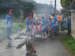 花車が先導します。祝儀を戴いた方には
