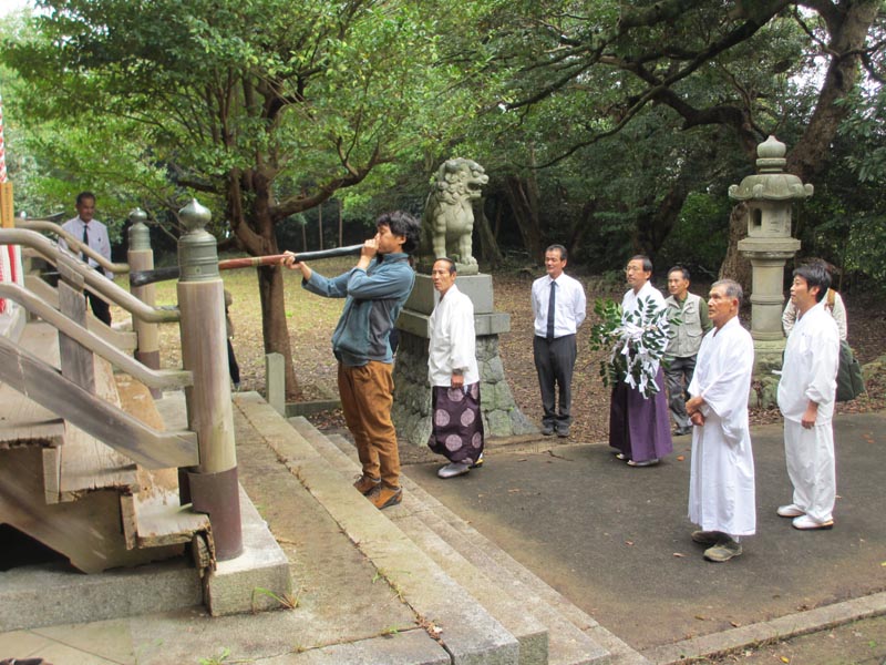 参拝者の氏子で「ディジュリドゥ イダキシロ」