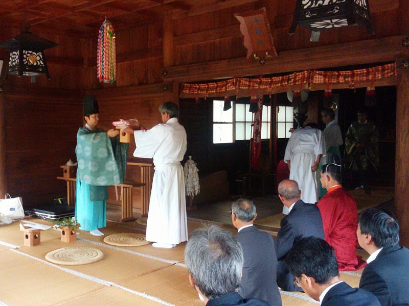 式典は、宮司の祝詞奏上があり、玉串