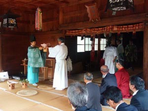 愛宕社の祭礼は13日の午後3時に慣例により、宮司なしで神社委員長が式典を実施しました。