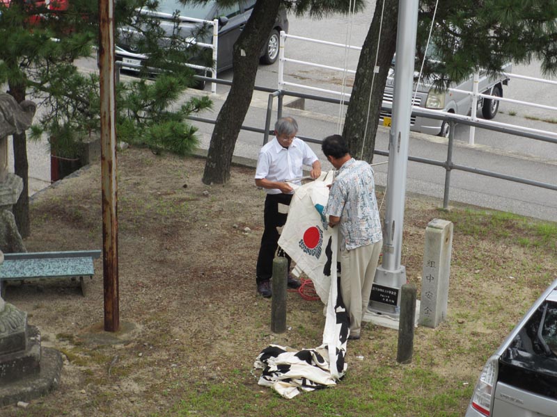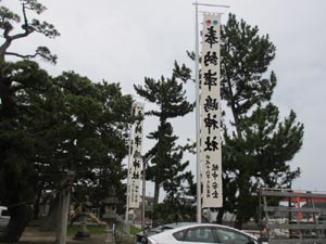 幟が左右に2本立ちました。2本を撮影するため、斜めからの写真です