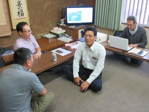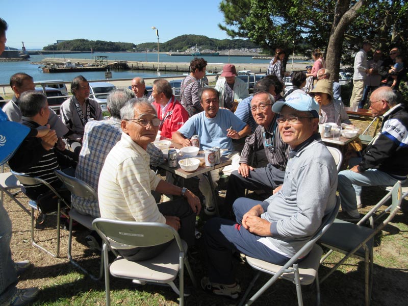 台風一過の眩しいばかりの日差しのもと、大人達はビールが進みます。同じ氏子とは言え久々の顔で、談笑が進みます