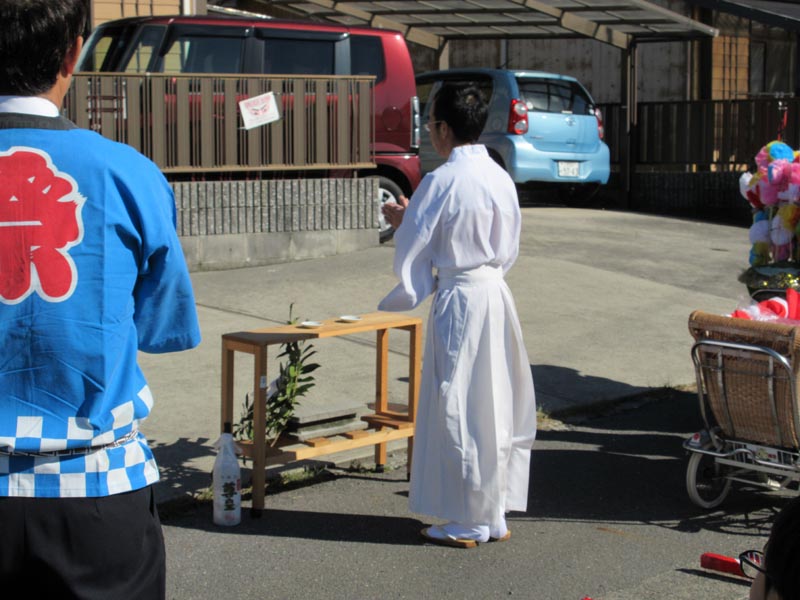 神社委員長の祝詞で式典が始まります子供の健康、神輿の安全が祈願されます