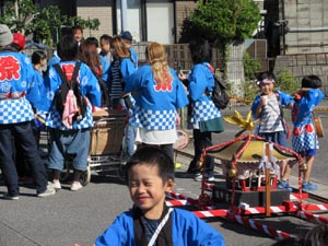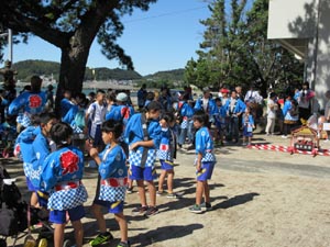 小見行組公民館に到着です。中柴の神輿はもう到着していました。子供達の声が賑やかです |