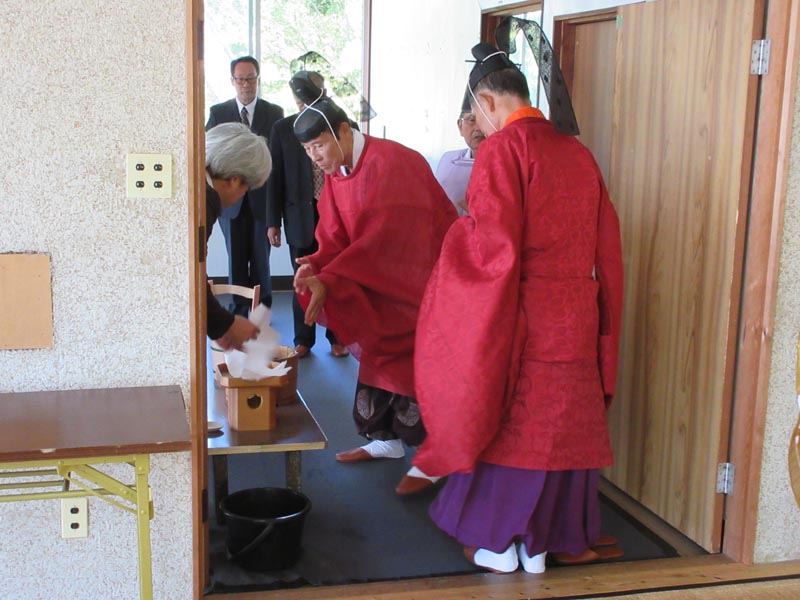 式典参列者は、手桶の水で身を清めての入場です。宮司の入場で式典開始です
