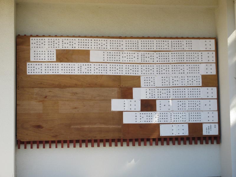 公民館外壁には、ご神前、ご供物の奉納者の名前が張り出されます。自分の名前があるか確認をします