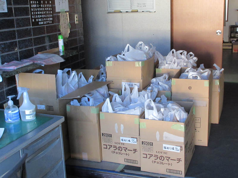 今年は、新コロナ感染症対策で、振る舞いの酒等の口に入る物は一切取りやめました。厄払いの記念の菓子は参拝を終えた方に、ここで渡すことにしました