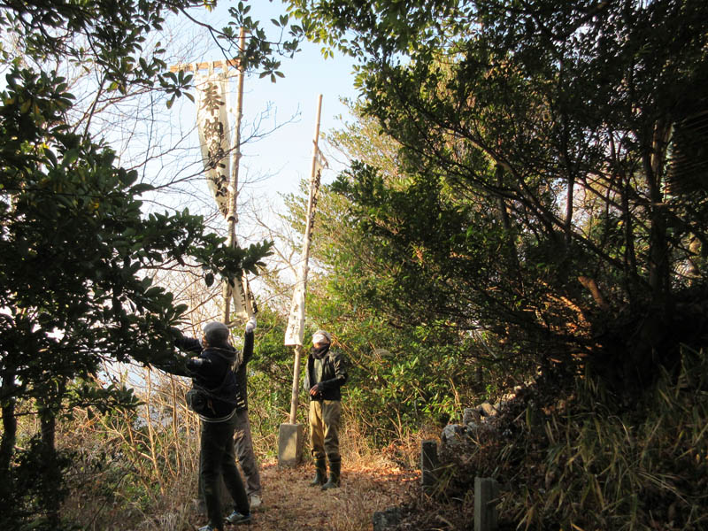 愛宕社では山へ登り、幟を立て準備開始