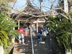 大晦の朝、ボランティア団体「愛宕会」による観音堂の草刈り、清掃があります