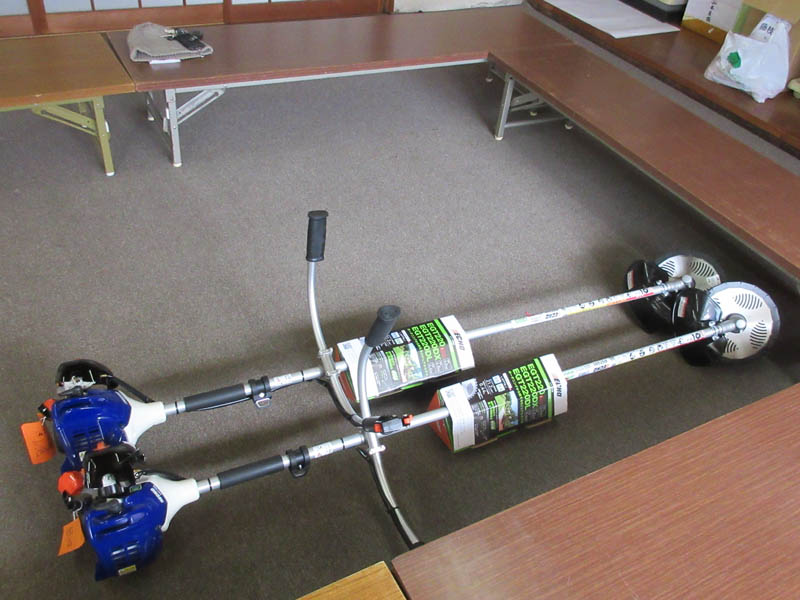 6名から小見行組へ厄年記念として贈呈された刈り払い機2台です