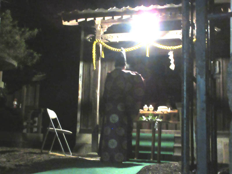 寒く薄暗い本殿ですが、宮司さんにより祝詞奏上があります。小見行組内氏子の安泰が祈念されます
