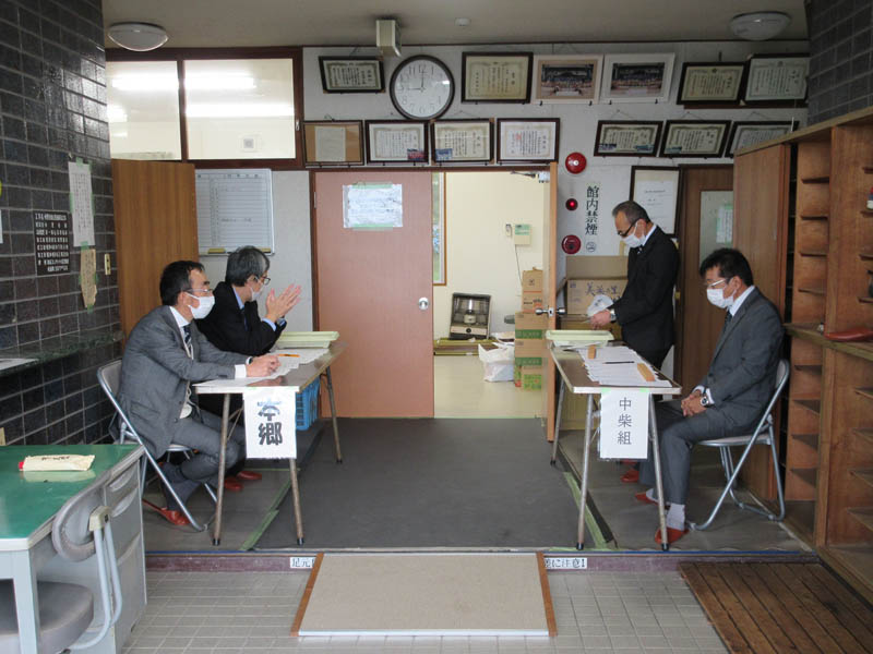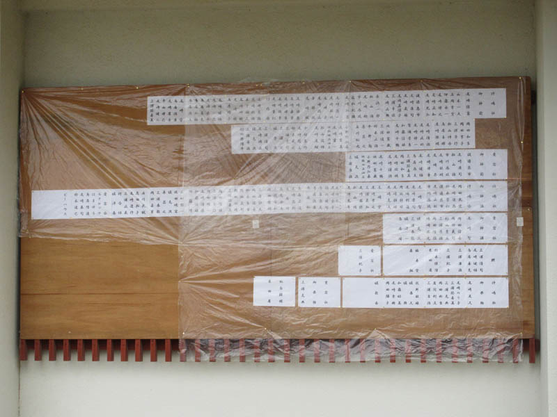 公民館前には御神酒、鏡餅、ご神前のご芳名が掲示されます